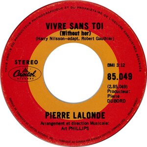 Lalonde, Pierre - Caroline (Sweet Caroline) b/w Vivre Sans Toi (Without her)