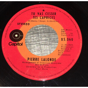 Lalonde, Pierre - C'est Toujours Comme ça La Première Fois b/w Tu Vas Cesser Tes Caprices (Evil Ways)