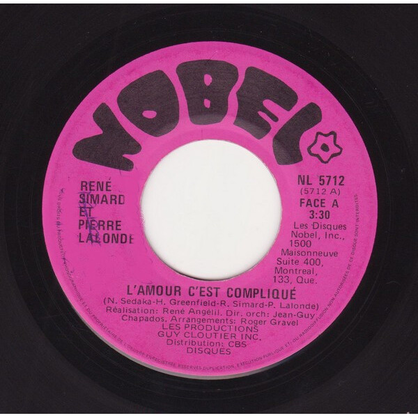 Lalonde, Pierre - René Simard, Pierre Lalonde L'Amour C'est Compliqué b/w L'amour C'est Compliqué (Instrumental)