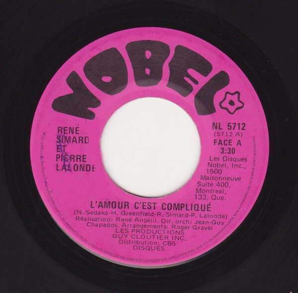 René Simard, Pierre Lalonde L'Amour C'est Compliqué b/w L'amour C'est Compliqué (Instrumental)