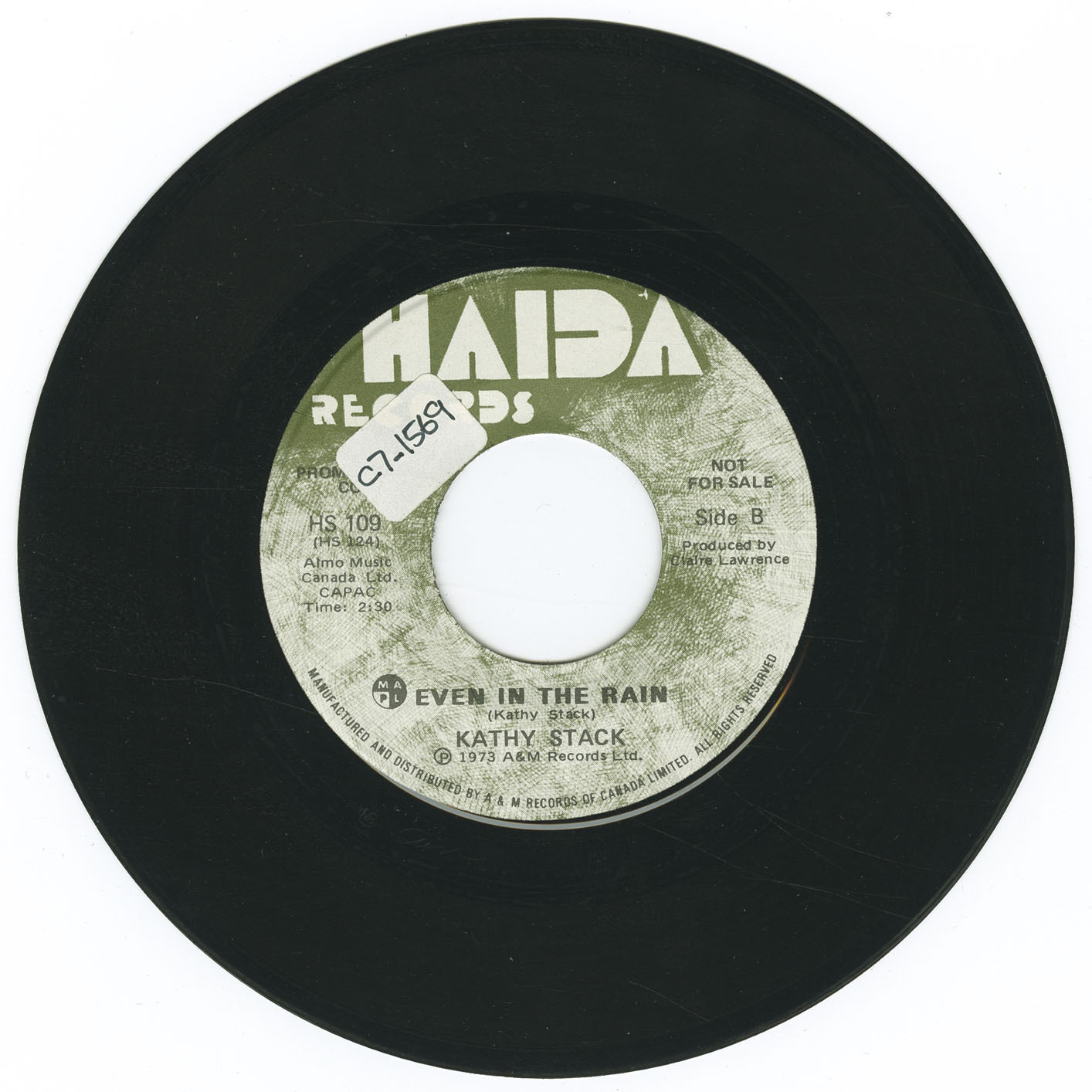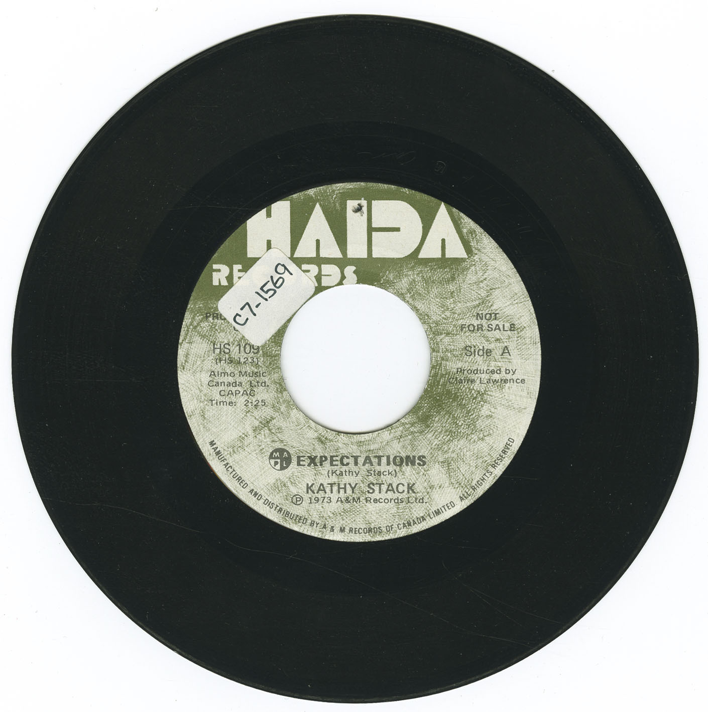 In 1973, she released a rare promotional 7″ single on the Haida label, Expectations b/w Even in the Rain, produced by Claire Lawrence. Nearly a decade later, Stack self-released her only full-length vinyl LP in 1982, recorded on Salt Spring Island and now considered a sought-after Canadian private press gem, blending introspective folk with subtle shades of funk and jazz.