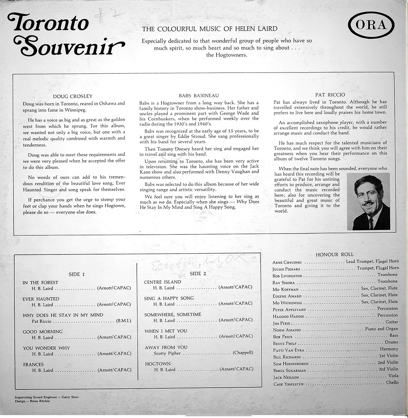 Babs is a Hogtowner from a long way back. She has a family history in Toronto show-business. Her father and uncles played a prominent part with George Wade and his Cornhuskers, when he performed weekly over the radio during the 1930’s and 1940’s.