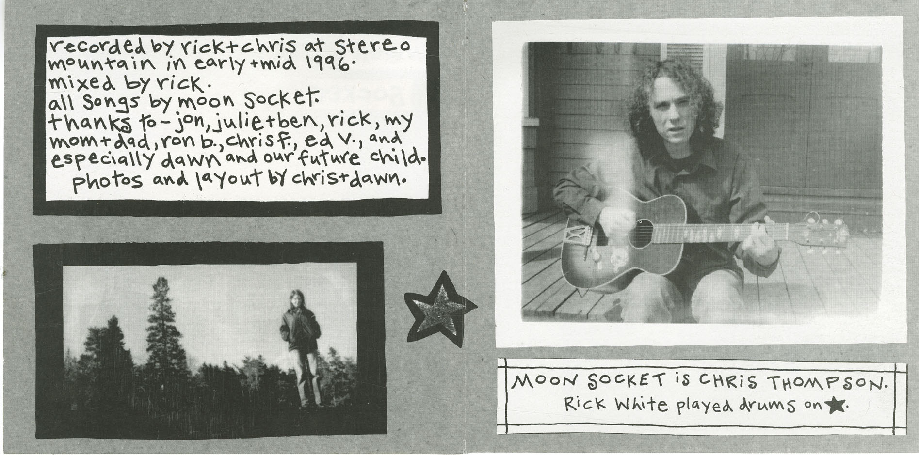 Although born in Ottawa, Thompson was raised in Moncton, New Brunswick from the age of five. He began recording under the Moon Socket name in 1992, before Eric’s Trip disbanded, using the project to explore a more vulnerable, stripped-down approach to songwriting—marked by hushed vocals, acoustic textures, and lo-fi production steeped in four-track tape hiss. While his work with Eric’s Trip leaned toward distorted indie rock, Moon Socket focused on emotional interiority, often performed and recorded entirely by Thompson himself.