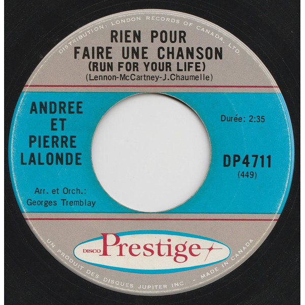 Lalonde, Pierre - Pour Faire Une Chanson (Run For Your Life) b/w Ces Mots Stupides (Something Stupid) (et Andree Lalonde)