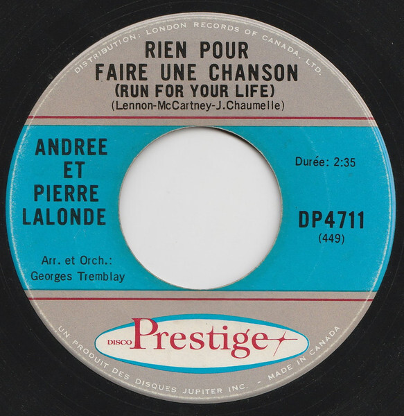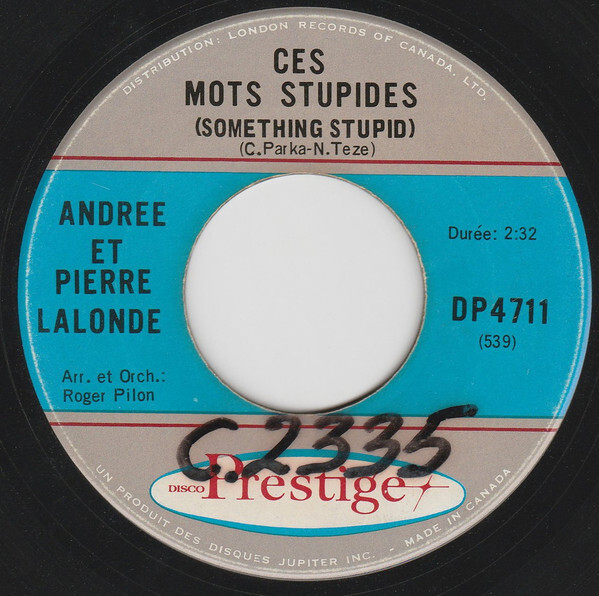 Pour Faire Une Chanson (Run For Your Life) b/w Ces Mots Stupides (Something Stupid) (et Andree Lalonde)