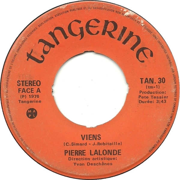 Lalonde, Pierre - Viens b/w Je Serai Le Premier à Mirabel