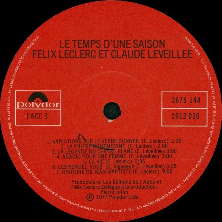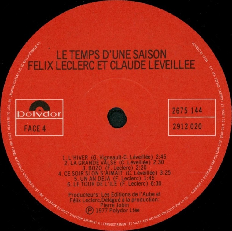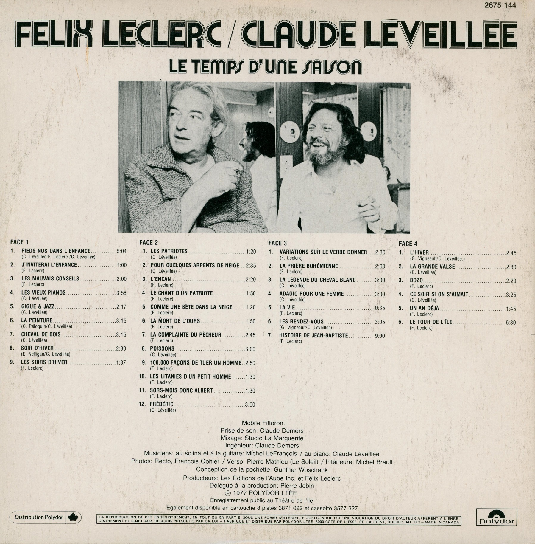 Léveillée, Claude - Le temps d'une saison (et Félix Leclerc) (2 LP)