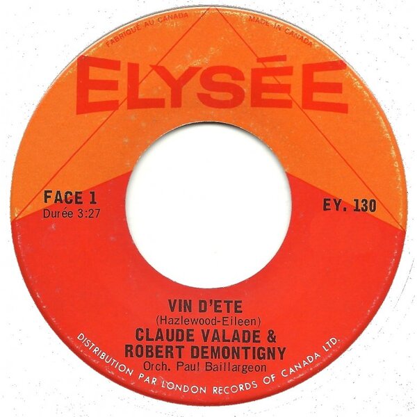 Valade, Claude - Claude Valade Et Robert Demontigny Vin D'été b/w La Chanson Sur Une Note
