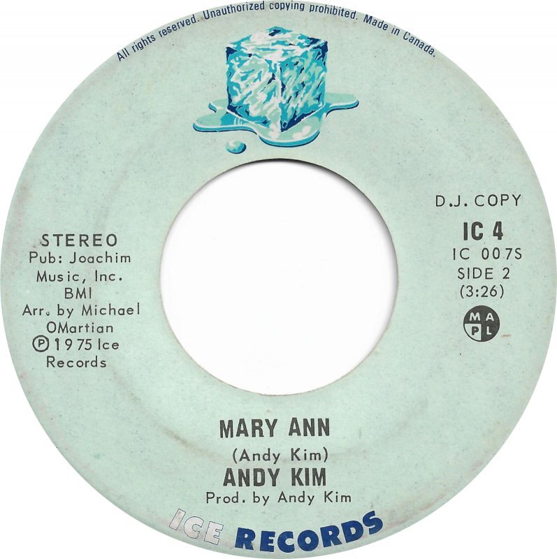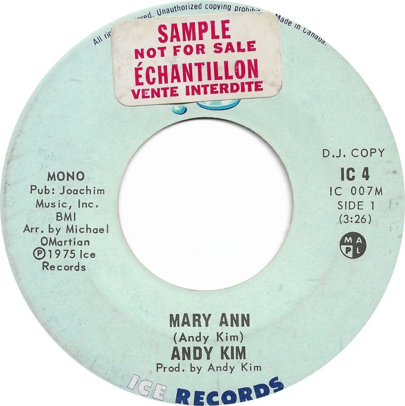 Kim, Andy (Androwis Youakim) - Mary Ann [Mono] b/w Mary Ann [Stereo] (promo only)