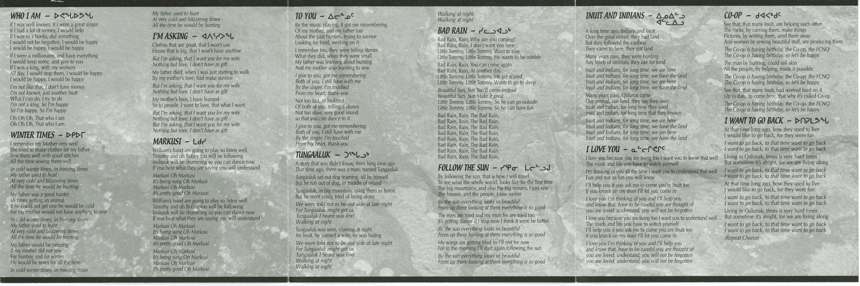 That same year, Adams returned to Inukjuak and began to write his own songs in earnest—pieces that told stories of hunting and hardship, of shamans and seasons, of Inuit love and modern displacement. He sang in both Inuktitut and English, always rooted in the sounds and values of his people. His music became a cultural mission: to uplift the voices of Inuit history while guiding younger generations through changing times.