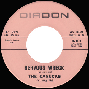 By the turn of the 1960s the Canucks were working the California–Nevada circuit, playing Reno and Las Vegas and edging close to stardom. They toured Alaska with the USO in 1958 alongside Bob Hope, crossed paths with Jimmy Durante, and even backed Doris Day on Please Don’t Eat the Daisies. Based in Los Angeles with an apartment off Hollywood Boulevard and a Cadillac parked outside, they cut two rock ’n’ roll / rockabilly singles for the Diadon label: Rock Around the Barn b/w Never Before (Diadon 45-60, 1960), featuring Ray Park on vocals, and Nervous Wreck b/w My Kind of Love (Diadon D-101, 1961), with Red Lewis handling lead vocals. Both discs capture the band’s raw early energy and stand as rare Canadian contributions to the burgeoning U.S. rockabilly market.