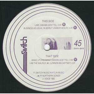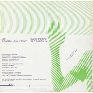The record featured four tracks: Lime, Business As Usual in Beirut, Wake Up Dreaming, and a driving electronic cover of I Am the Walrus. The songs, mostly co-written by Swann, Goettel, Damur, and Wolfe, combined mechanical precision with emotional immediacy, characteristic of mid-1980s Canadian synthpop. Findlay and Swann produced, with a striking sleeve design by Dennis Presiloski, photography by Dwayne Brown.