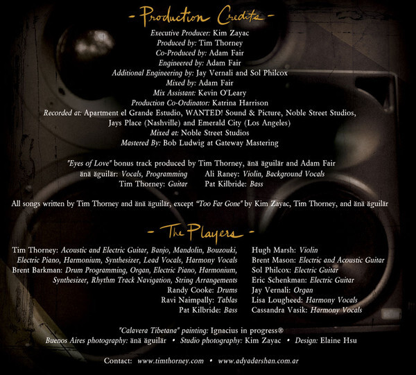All songs written by Tim Thorney and and águilar, except “Too Far Gone” by Kim Zayac, Tim Thorney, and and águilar