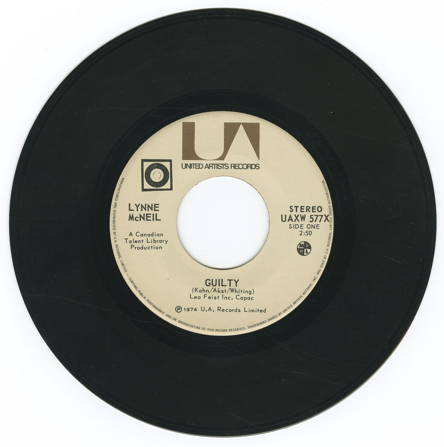Following her tenure with Hardy, McNeil continued her recording career as a solo artist. In 1974, she released the single “Guilty” b/w “If I Give My Heart to You” on United Artists (UAXW 577X) — a finely crafted pop ballad praised by RPM Weekly for its lush production and smooth vocal delivery. The single marked her debut under her own name and showcased her ability to bridge jazz sophistication with radio-friendly accessibility.