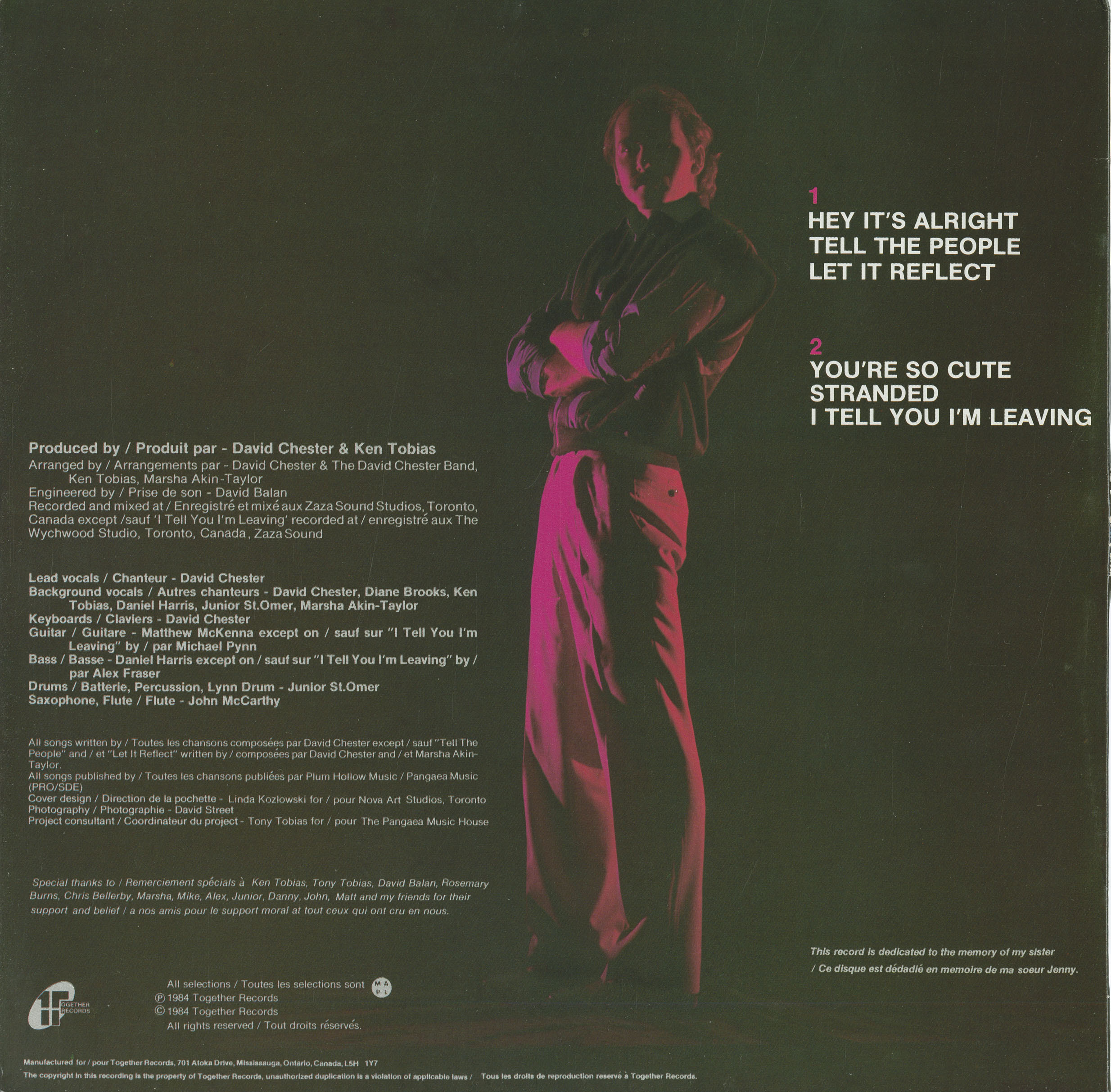 Written by David Chester except ‘I Tell The People’ written by Ken Tobias and 'Let it Reflect', written by David Chester and Marsha Akin-Taylor