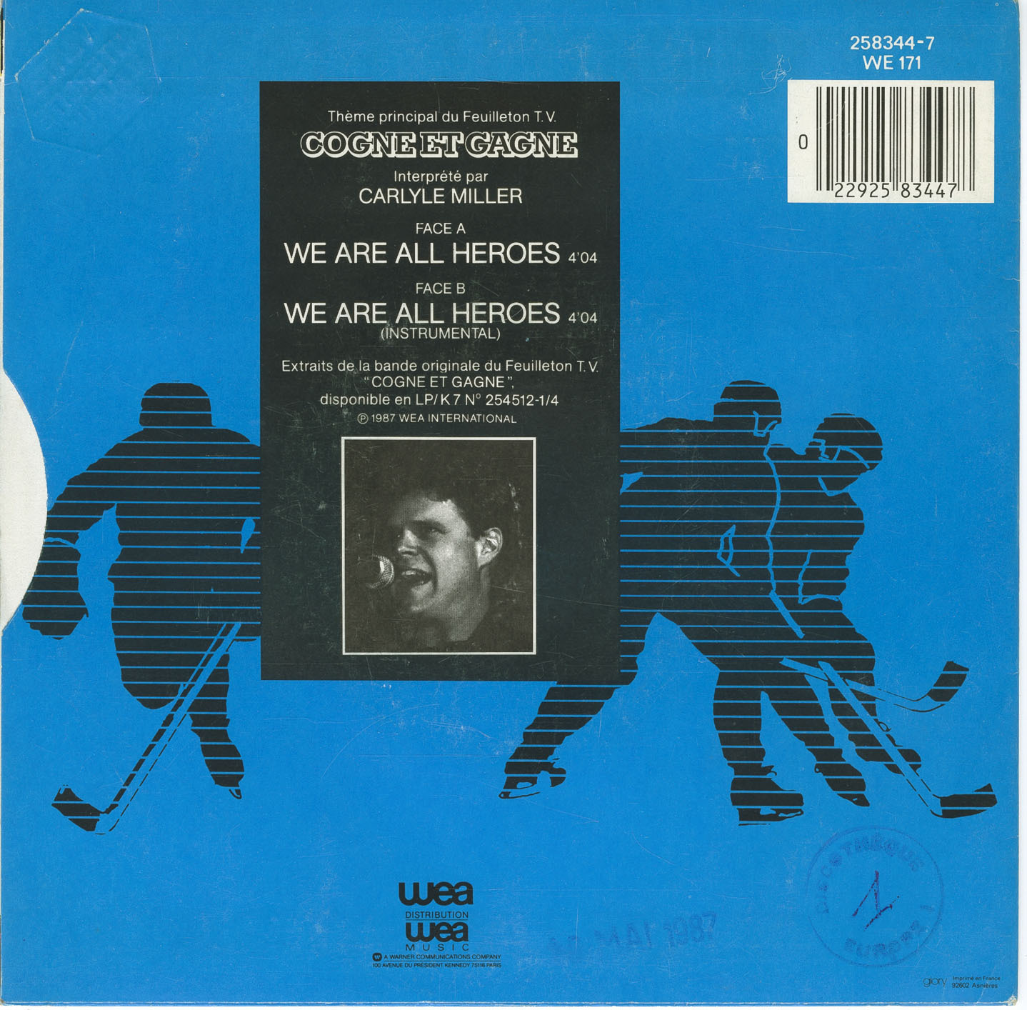 Miller’s later success arrived unexpectedly in the world of television drama, where his stirring performance of “We Are All Heroes” became the theme song for the wildly popular Québec hockey series Lance et compte. Released first in 1986 on a split 7-inch with Nathalie Carsen and then in 1987 as a standalone French-market single under the title “Cogne et gagne,” the track captured the emotional tone of the series and introduced his voice to a new, province-wide audience. The song’s anthemic quality and Miller’s passionate delivery ensure it remains one of the most memorable Québec TV themes of the decade.
