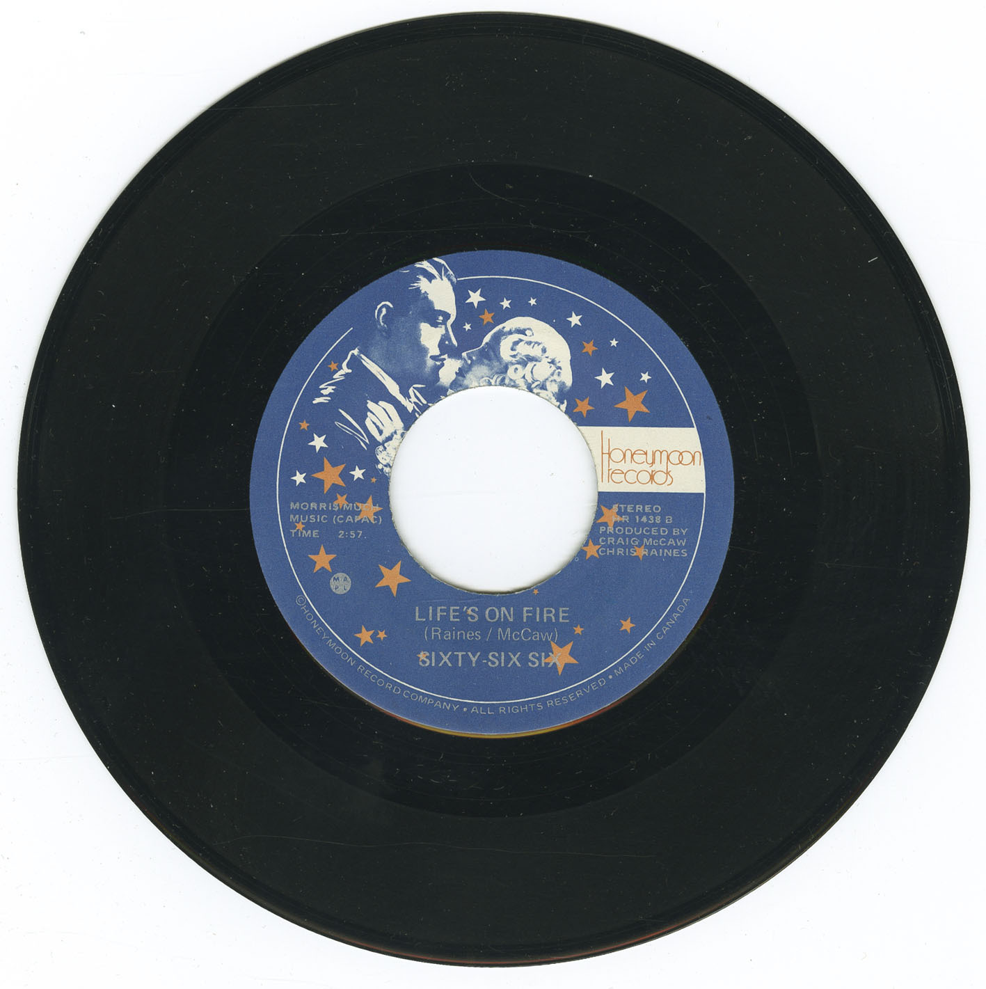 Their sole commercial release, the 1975 single “Put You Out” b/w “Life’s On Fire” on Honeymoon Records (HR 1438), was written and produced by Chris Raines and Craig McCaw and recorded at Vancouver’s Little Mountain Sound. Issued in small quantities and seldom seen outside Western Canada, the single has since become a collector’s item among enthusiasts of mid-1970s independent Vancouver rock.