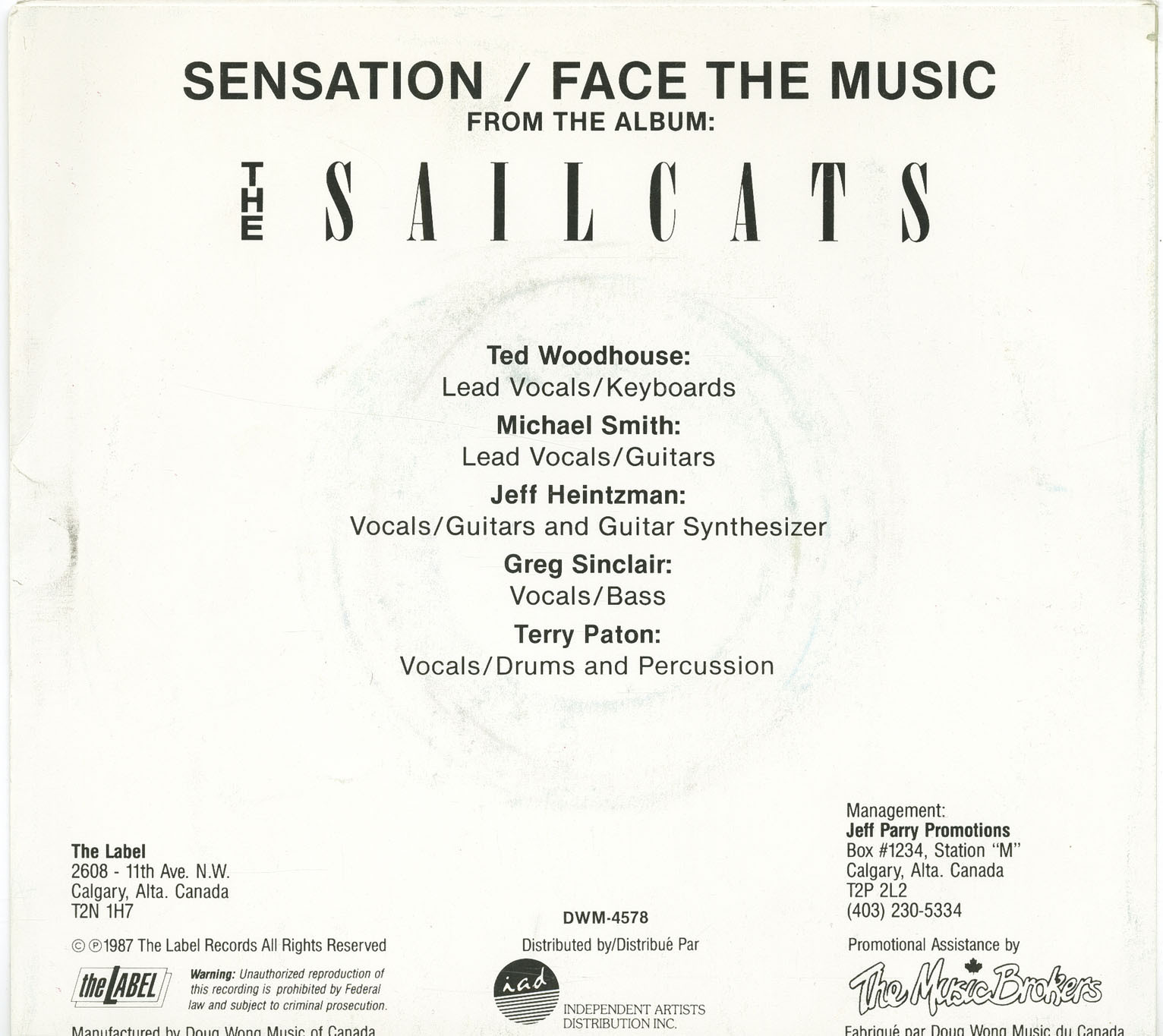 By 1983, Sailcats had issued their self-titled album The Sailcats on Calgary’s The Label, manufactured by Doug Wong Music. Produced by Joe Cool and recorded at Sundae Sound, Thunder Road Studio, and Metalworks, the album marked a decisive move toward a polished, harmony-forward pop-rock sound. Reflecting on the change in direction, the band later noted, “When that Urban Cowboy thing died out and we couldn’t get a job playing bluegrass anymore, we had to go pop.” All material was written by the band, with tracks such as “(We Don’t) Communicate,” “Sensation,” “Livin’ in a Movie,” and “Face the Music” highlighting strong vocal projection, balanced instrumentation, and a clear focus on contemporary radio formats. The single “Sensation” received attention from adult contemporary programmers, with the band observing that “It seemed to have the best response after we’d sent the record around to the radio stations,” helping position Sailcats beyond the strictly local circuit.