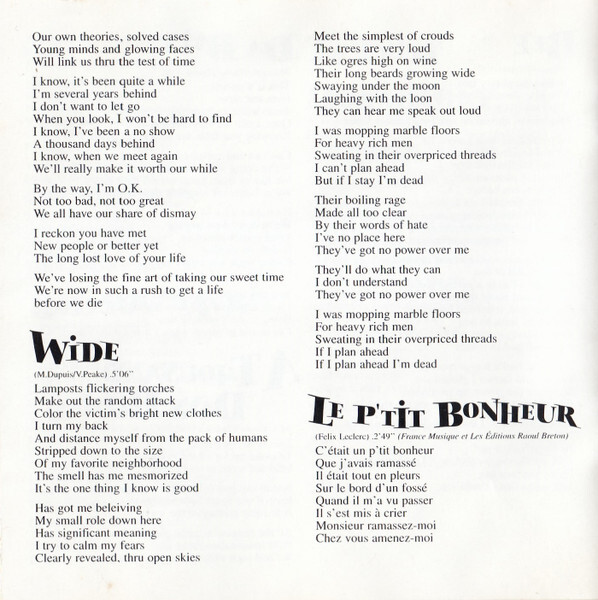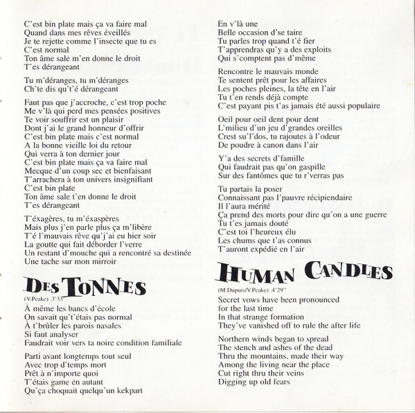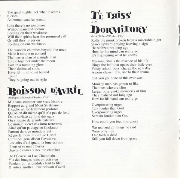 All songs except ‘Le p’tit bonheur’ and ‘À Tê Triss’ published by M.P.V. Records Inc.