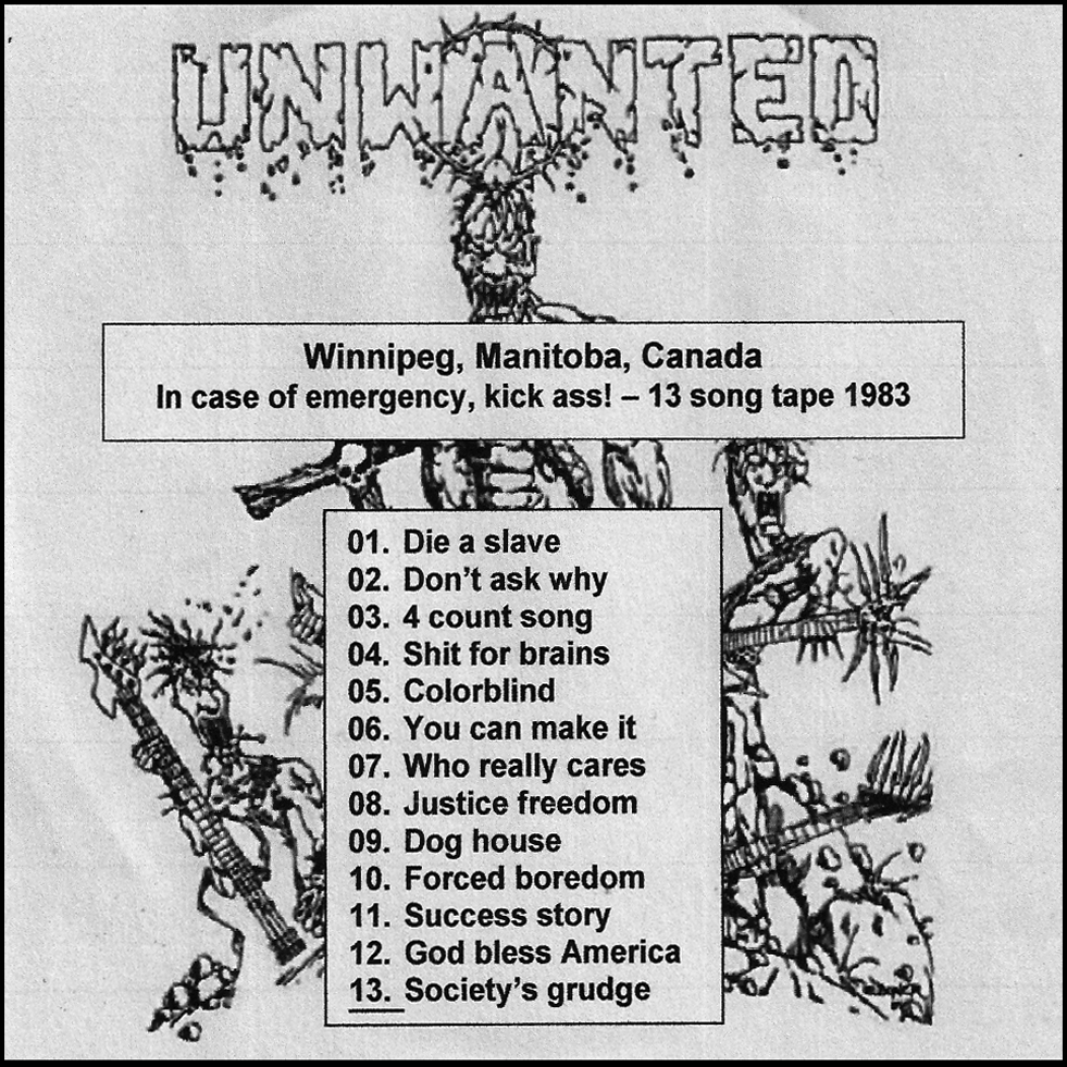 The Unwanted were a hardcore punk band from Winnipeg, Manitoba, active in the early 1980s. Formed around 1983, the original lineup described themselves—on their later MySpace page—as “four fuck ups from Winnipeg” who had a different idea of where punk was headed. Drawing on speed-driven hardcore and raw thrash energy, the band quickly built a reputation for intense live performances, undergoing multiple lineup changes along the way and surviving on “a lot of blood, sweat and beer.”