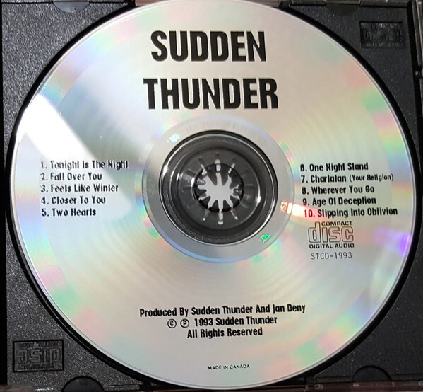 In 1993, Sudden Thunder released their self-titled album, recorded at Sonic Factory in Ottawa and engineered by Ian Derry. The album showcased a mature, confident sound, blending melodic hooks with heavier passages and longer compositions, including several tracks exceeding seven minutes in length. Though released independently and without major-label backing, the record stands as a solid document of Ottawa’s early-1990s metal underground and the post-Ivory Knight trajectory of its members.