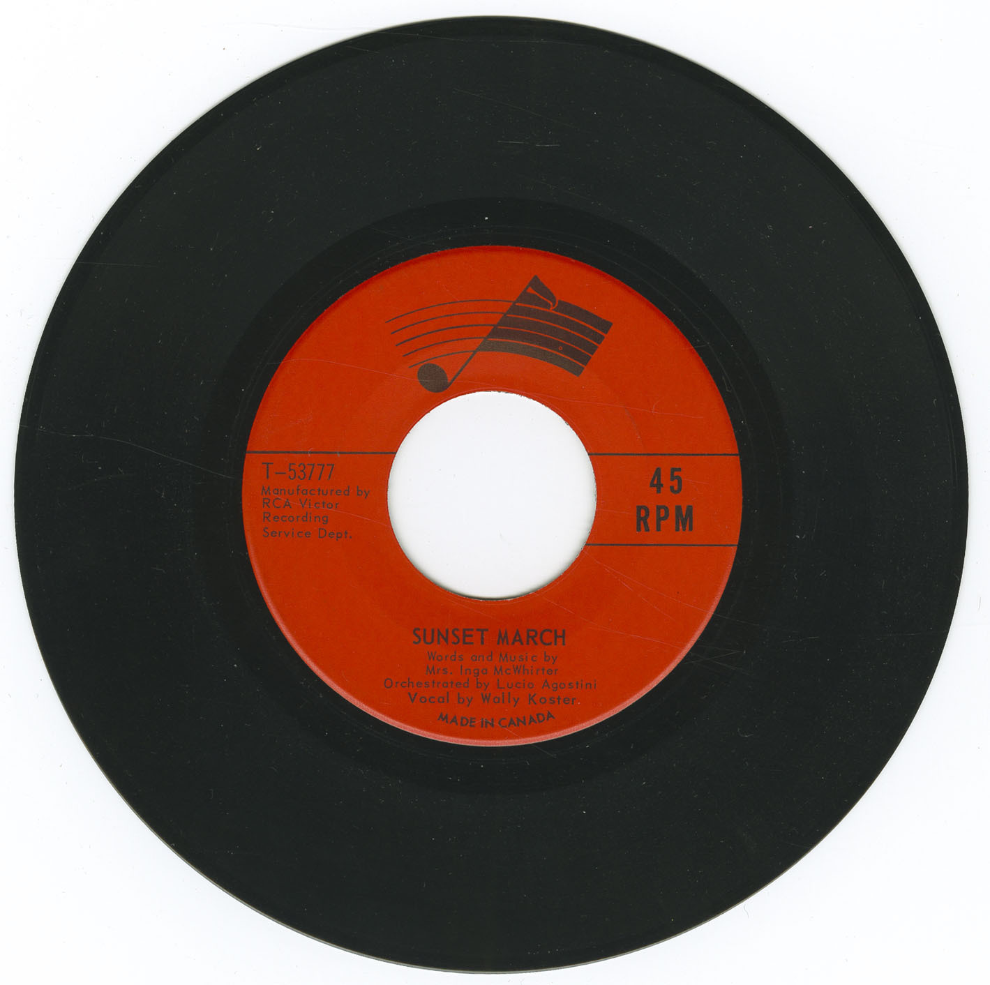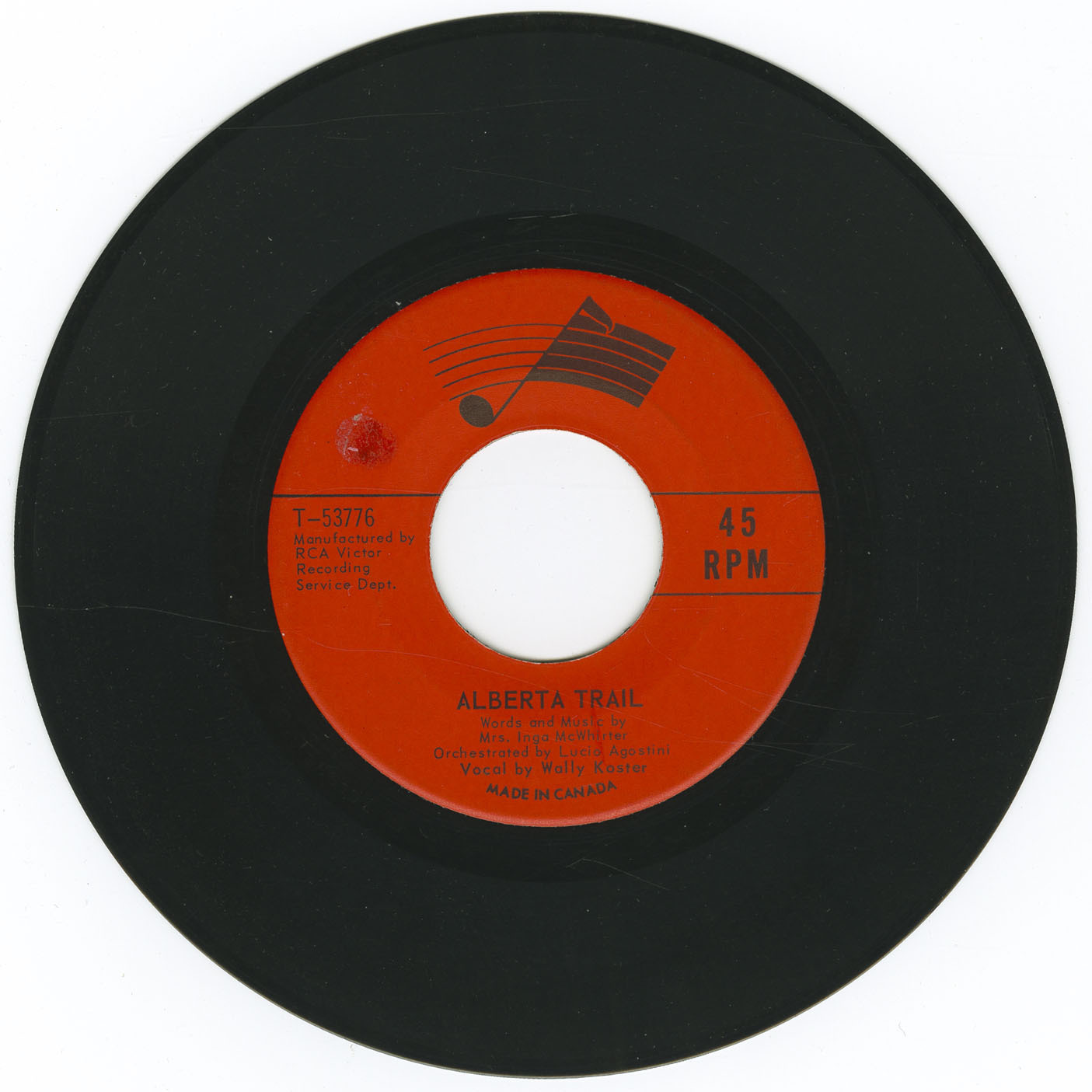 In addition to his LP work, Koster issued two singles. In 1966 he released the RCA Victor 45 Alberta Trail b/w Sunset Waltz (RCA Victor T-53776 / T-53777), manufactured by the RCA Victor Recording Service Department. Both songs were Alberta-themed compositions written by Mrs. Inga McWhirter, orchestrated by Lucio Agostini, and feature Koster’s vocal set against a refined, jazz-influenced orchestral backdrop.