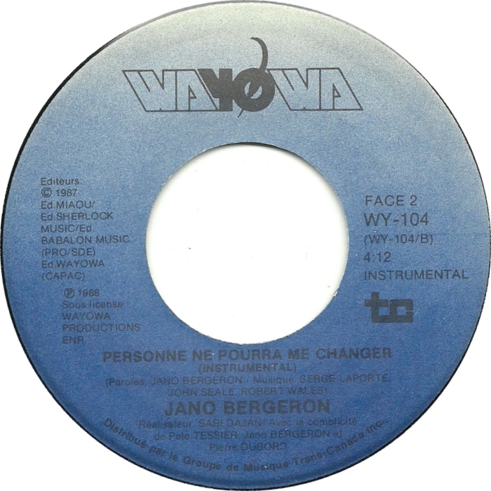 Bergeron, Jano - Personne Ne Pourra Me Changer b/w Personne Ne Pourra Me Changer [instrumental]