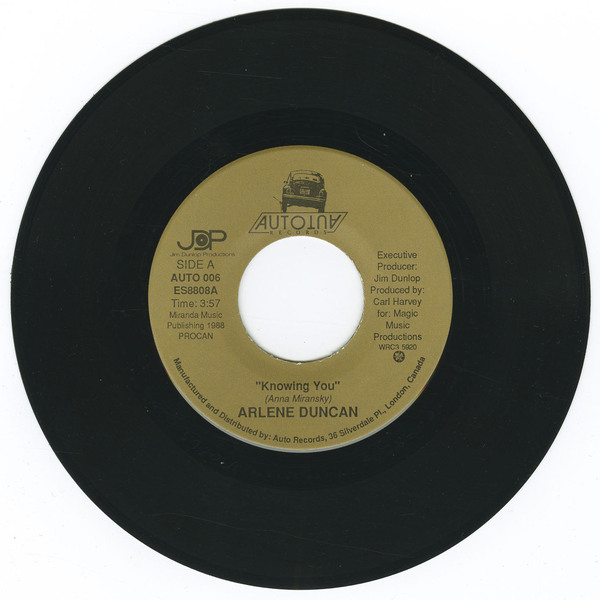 Duncan’s recorded output also includes the 1988 Canadian 7-inch single “Knowing You,” issued on Auto Records. The release was produced by Carl Harvey, with Jim Dunlop credited as executive producer, and features a vocal version backed with an instrumental flip featuring saxophonist Demo Cates.