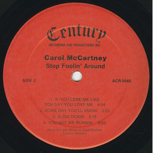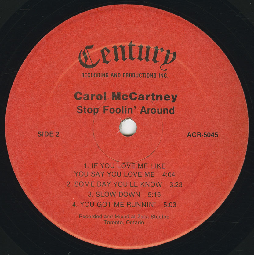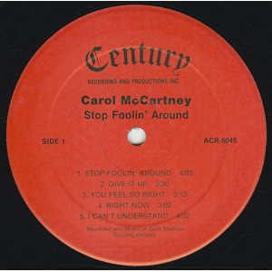 McCartney first reached national attention in 1978 when she was crowned Miss Toronto and subsequently placed fourth at the Miss Canada pageant, hosted by Jim Perry. Shortly thereafter, she entered the recording studio, releasing the LP Stop Foolin’ Around for Century Recording And Productions Inc. The album placed her in a polished Toronto studio context, working closely with composer and producer Paul J. Zaza and drawing connections to film and commercial music of the period. During the same era she also released club-oriented 12-inch singles, including the Hi‑NRG extended mix of ‘If You Love Me Like You Say You Love Me’, bridging pop, dance, and studio-driven production styles.