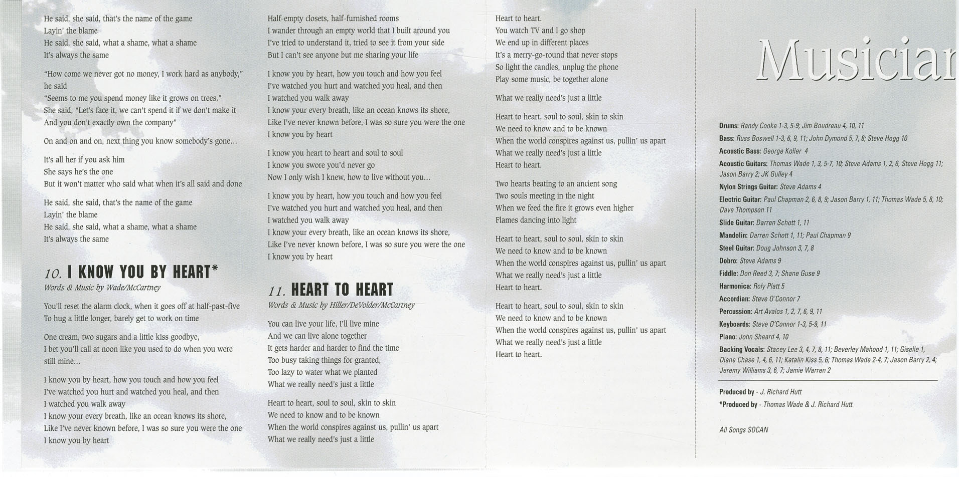 You're only as good as the musicians you work with, I've been fortunate to work with the best on this record - a heartfelt thanks to all of you, and to Cory Barnes for his fabulous engineering skills.