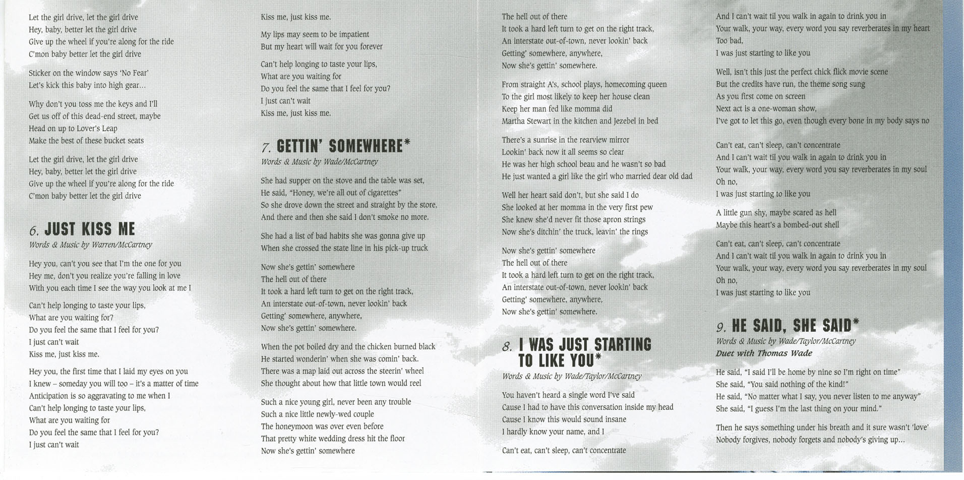 Thomas Wade: acoustic guitar, electric guitar, backing vocals