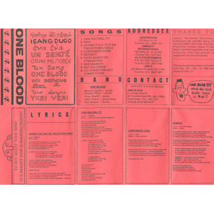In 1991, One Blood released the LP Building a World of Prosperity With…The Efficiency of the Free Enterprise System on the New York–based label Gern Blandsten. The album opens with a spoken-word passage reflecting on the Canadian government’s treatment of First Nations people and the persistence of colonial violence and dehumanization, framing the record’s political intent before the music begins. Recorded at Peter Hudson Studios and Harlow Studios, the LP sharpened the band’s critique of capitalism, colonialism, nationalism, and state power, grounding its politics in contemporary global events. Issued with an extensive booklet containing lyrics, political statements, photographs, and illustrations, the album expanded the scope of the band’s work beyond earlier releases.