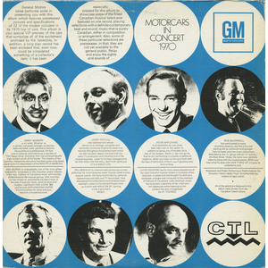 especially pressed for this album to showcase some of the finest Canadian musical talent ever featured on one record, playing selections with a definite contemporary beat and sound; music that is purely Canadian, either in composition or arrangement. Also, some of these particular selections are prereleases in that, they are not yet available to the general public. Relax and enjoy the sights and sounds of . . .MOTORCARS IN CONCERT 1970