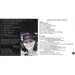 It is immediately obvious why this charismatic lady has been an integral part of countless cowboy poetry gatherings over the years. Her lyrical graphics and brilliant insight are propelled by her unique vocal style. From warm intimacy to a fiery power, her originals receive appropriate treatment. Her display of diversity includes clever satire and as she probes into another forte...gospel.