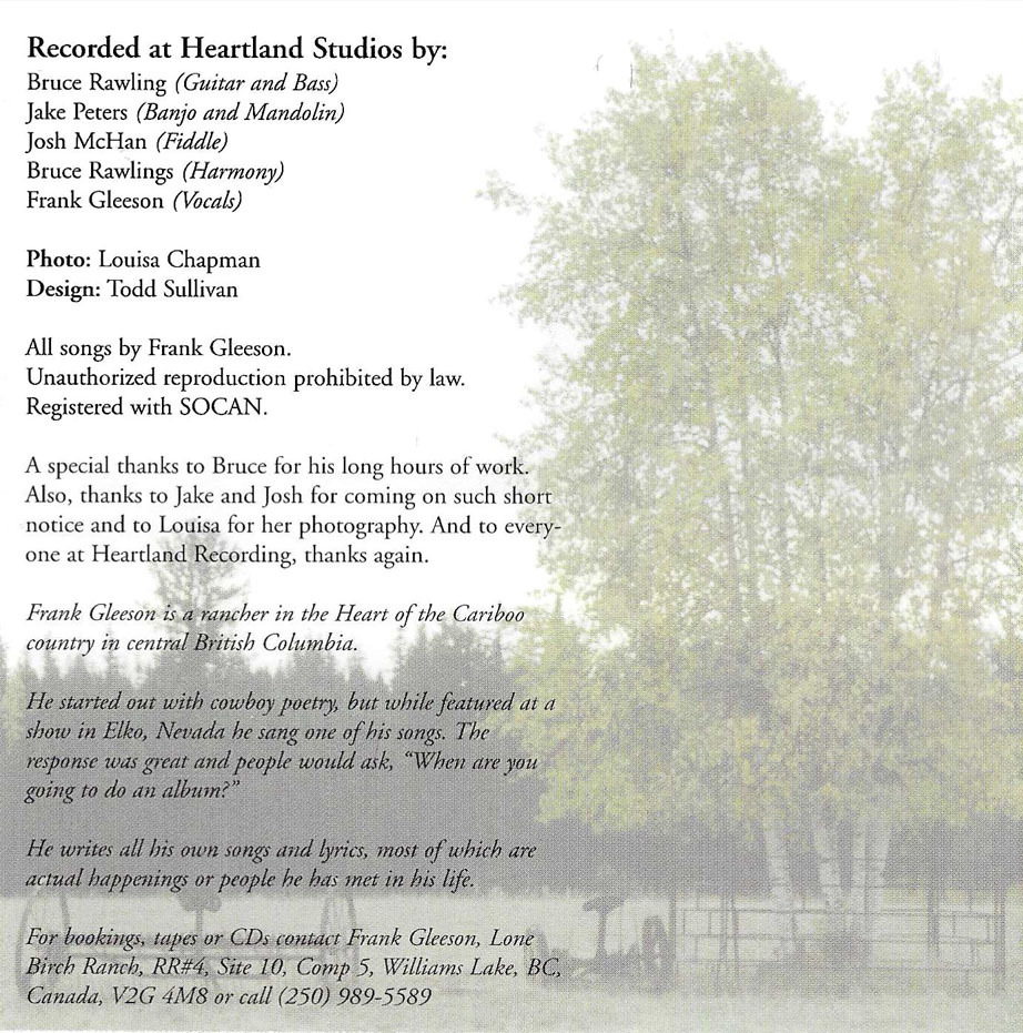 Frank Gleeson is a rancher in the Heart of the Cariboo country in central British Columbia.