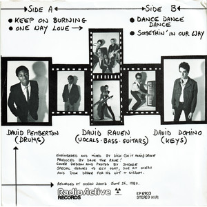 Back in British Columbia, West reinvented himself under the name David Raven and began assembling a new band. By 1980 he had secured management through Bob Burrows’ Radio Active organization in Vancouver and recorded a debut EP under the name David Raven and the Escorts. The first lineup centered on Raven handling vocals, bass, and guitars, alongside David Pemberton on drums and David Domino on keyboards. Their debut release — a four-song EP featuring “Keep On Burning,” “One Way Love,” “Dance Dance Dance,” and “Somethin’ In Our Way” — was recorded at Ocean Sound on June 26, 1980 and issued on Radio Active Records, with Dick “Do It Again” Drake engineering and mixing.