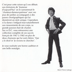 On this CD you will find a complete collection of his French hits from 1967 to 1982, in addition to two songs that are dear to him: “Qui a le droit” and “Je reviens te chercher.”