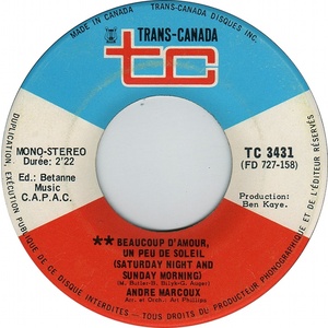 André Marcoux - Beaucoup D'Amour, Un Peu De Soleil (Saturday Night And Sunday Morning) b/w L'Amour Est La (Love Me Today)